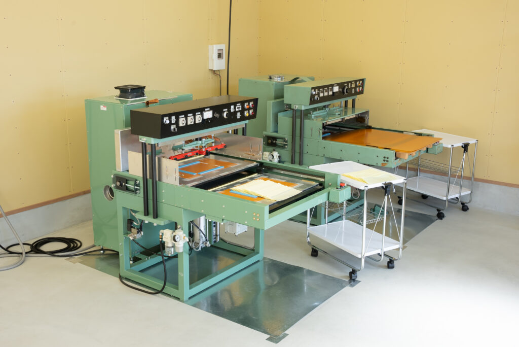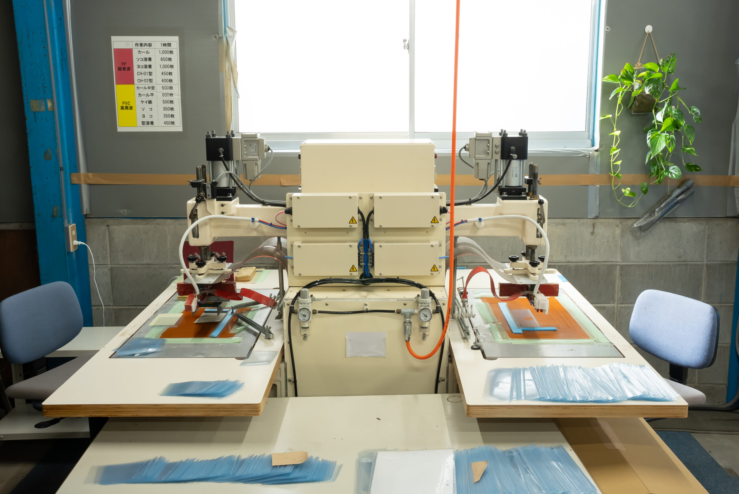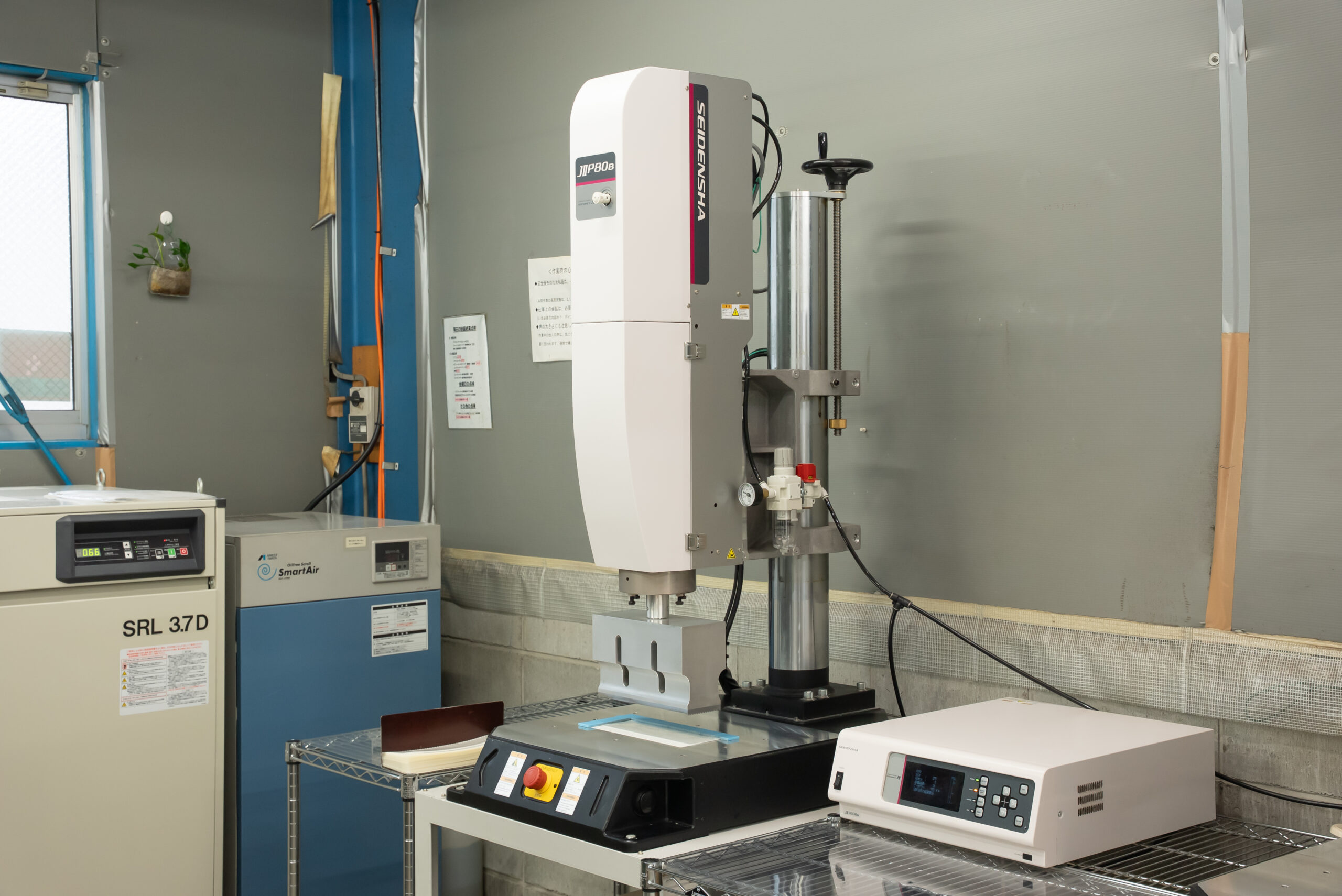 超音波溶着、高周波溶着など、材料の断裁からプレス加工まで全て一貫した加工を行っています。その為、短納期・特注品の対応も万全です。