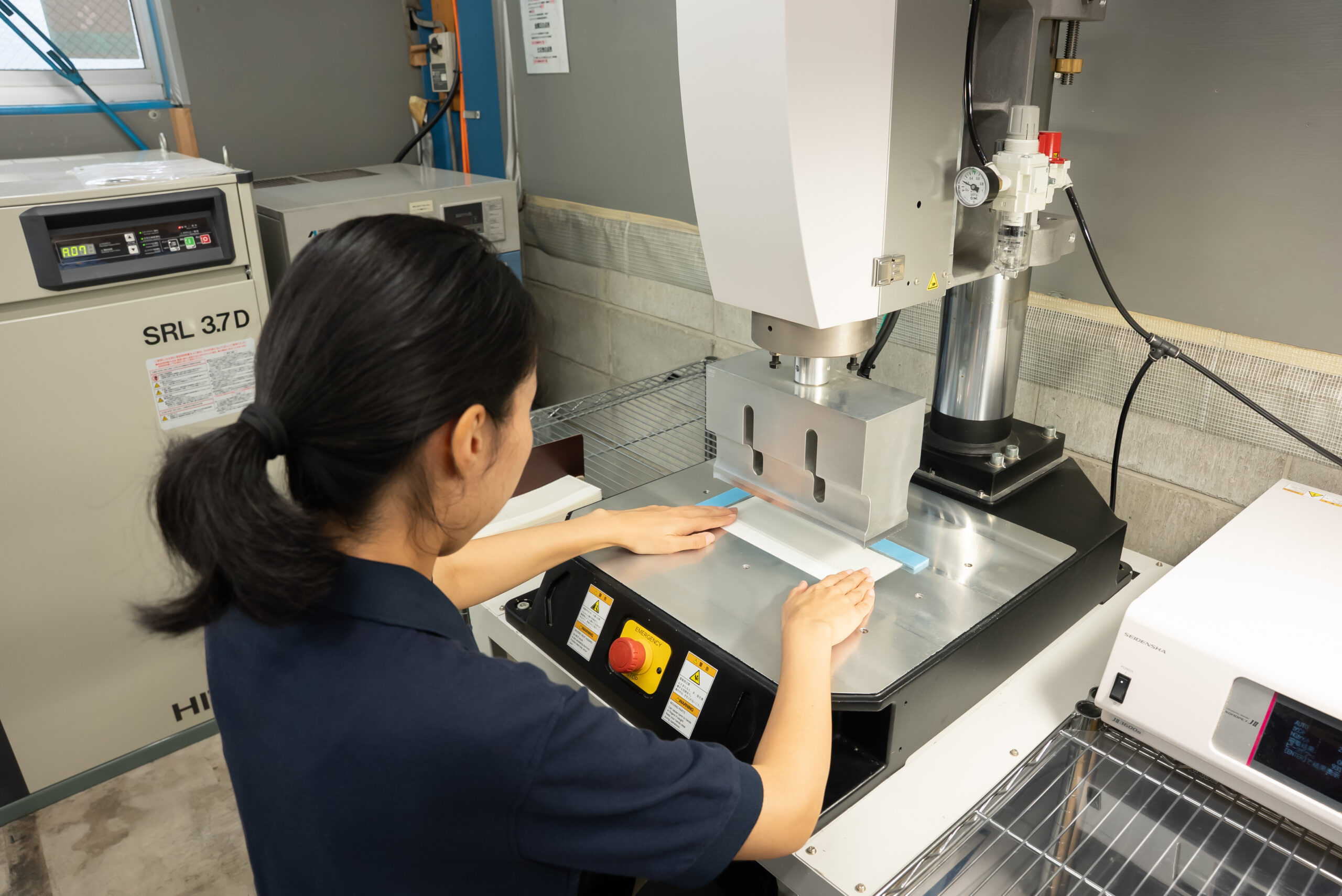 スーパーソニック溶着機(超音波溶着)と高周波溶着の2種類の製造方法で対応しています。
